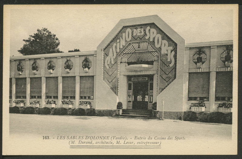 En 1925, Alonzo construit un buffet à proximité du Parc des Sports. Il veut absolument édifier un casino au sein du quartier de la Rudelière. Le projet de l’architecte Durand (casino Fantôme) étant abandonné. Il décide de transformer le buffet du Parc des Sports en établissement de jeux. Le 9 juin 1928, le conseil municipal autorise la mutation de la buvette en un casino. Et en 1929, le nouvel établissement est ouvert au public. Il prend comme dénomination Casino des Sports. Cet établissement se trouve donc en plein centre du complexe sportif et est très accessible pour les clients. Sa porte centrale relève de l’art des années 1930 avec son décor coloré. La salle de dancing est, elle aussi, conçue par Maurice Durand. Elle se constitue de frises décoratives tropicales. Cette construction est très contemporaine pour l’époque. Le bâtiment est très angulaire.